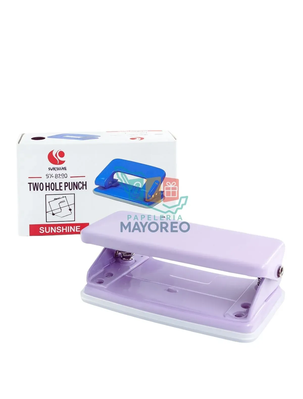 Perforadora de 2 agujeros modelo SY-8200 de la marca Sunshine, ideal para uso escolar, de oficina o en el hogar.