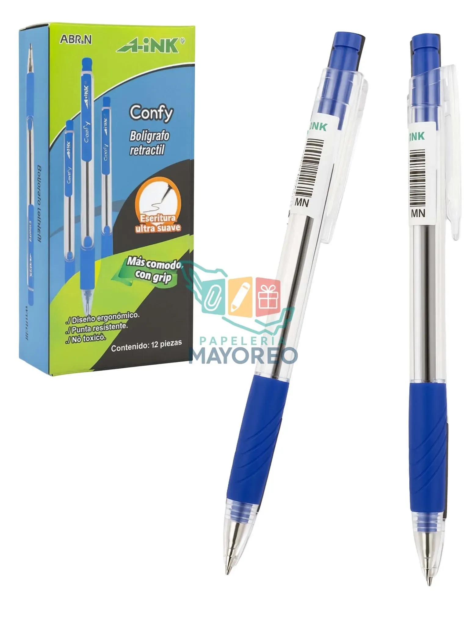 El bolígrafo retráctil A-INK , ofreciendo una escritura ultra suavegracias a su punta resistente y diseño ergonómico con grip antideslizante.