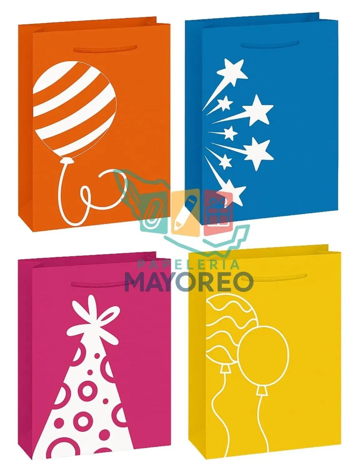 Set con 9 bolsas medianas PAD, diseño Color Party, ideales para cumpleaños, regalos o sorpresas.