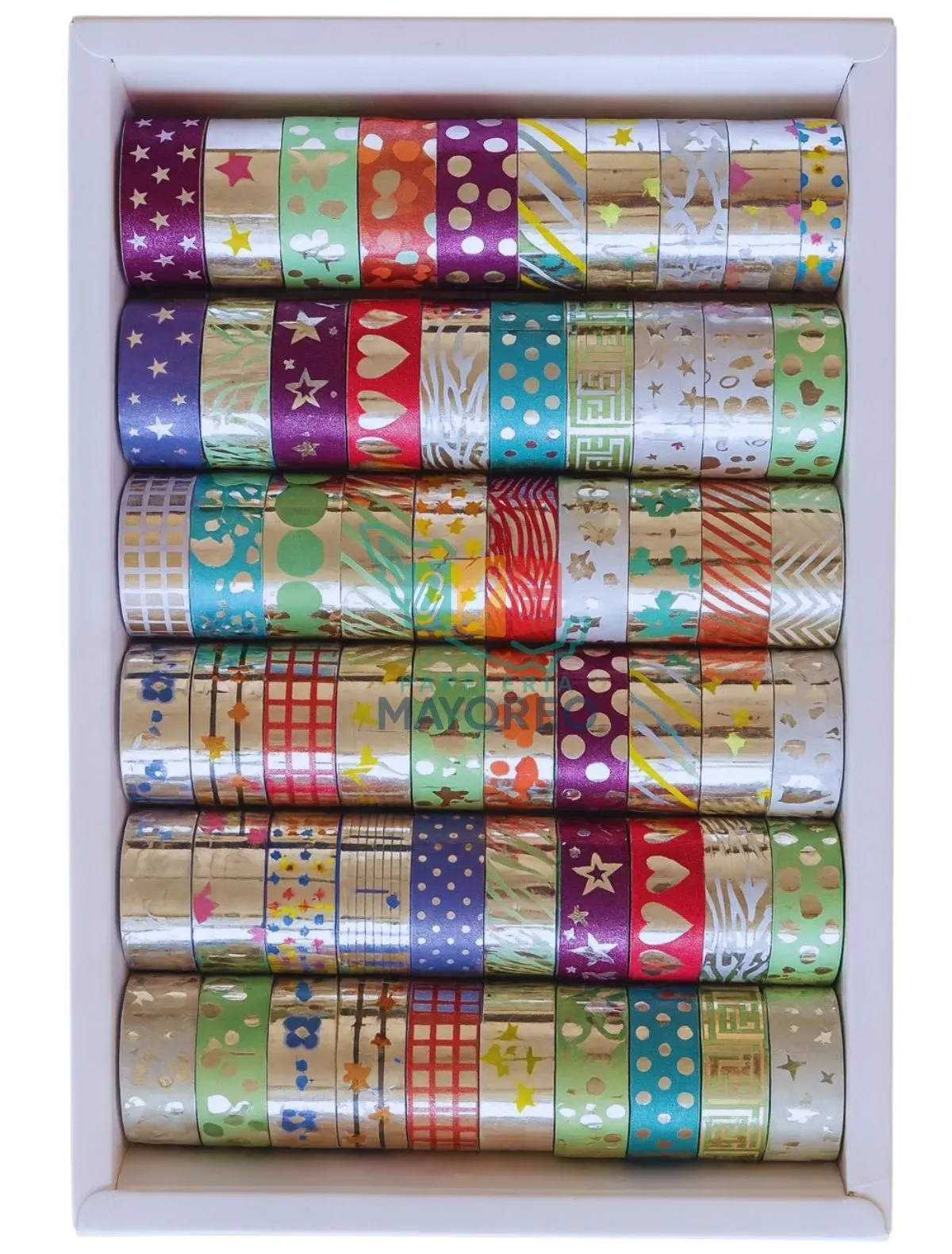 Agrega brillo y estilo a tus manualidades, envolturas y proyectos escolares con la cinta decorada metálica. Cada paquete incluye 6 rollos con 10 piezas cada uno, en diseños variados y colores metálicos que realzan cualquier creación.