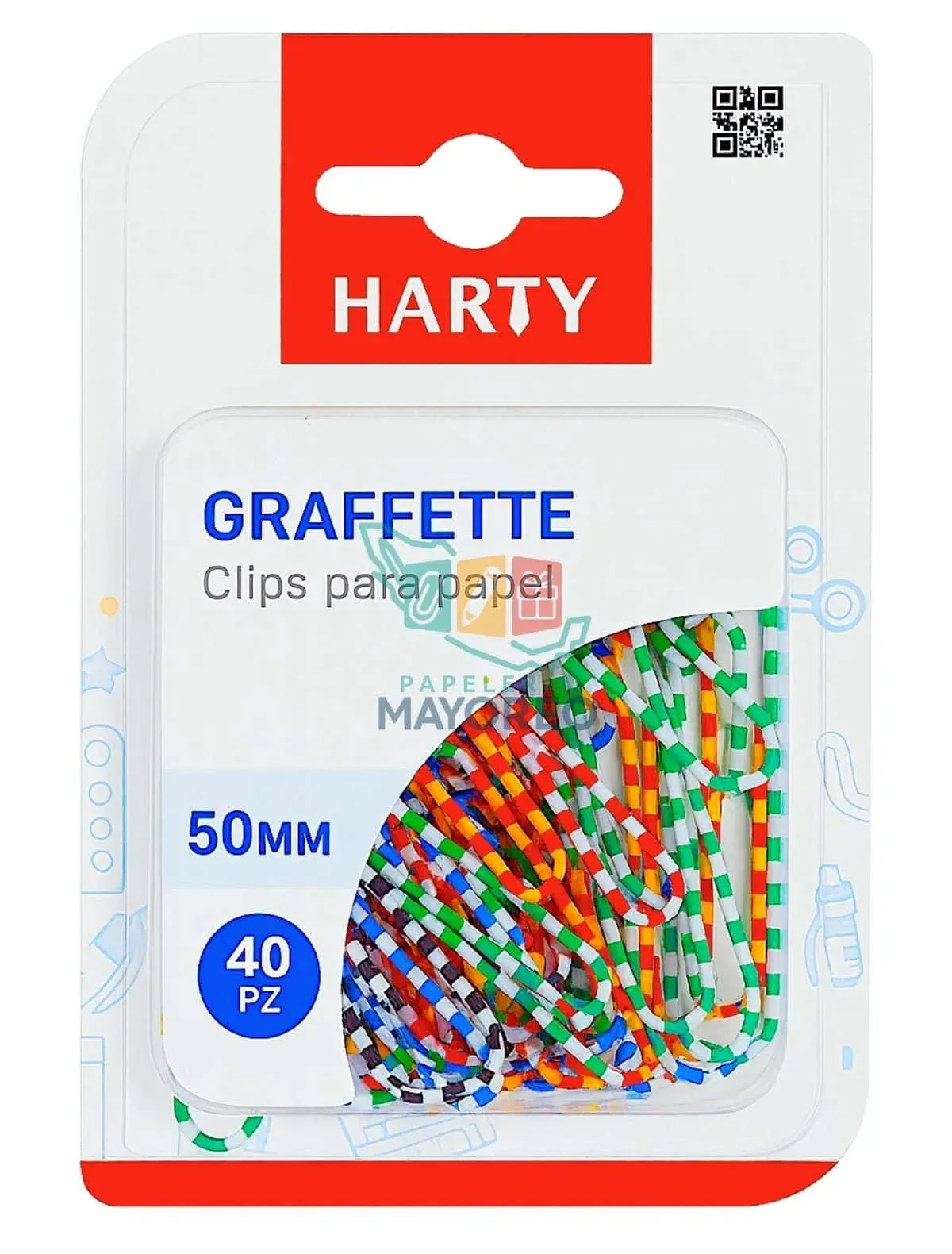 clips para papel HARTY . Cada paquete incluye 60 piezas de 33 mm, con recubrimiento de colores surtidos que brindan mayor durabilidad y un toque llamativo.