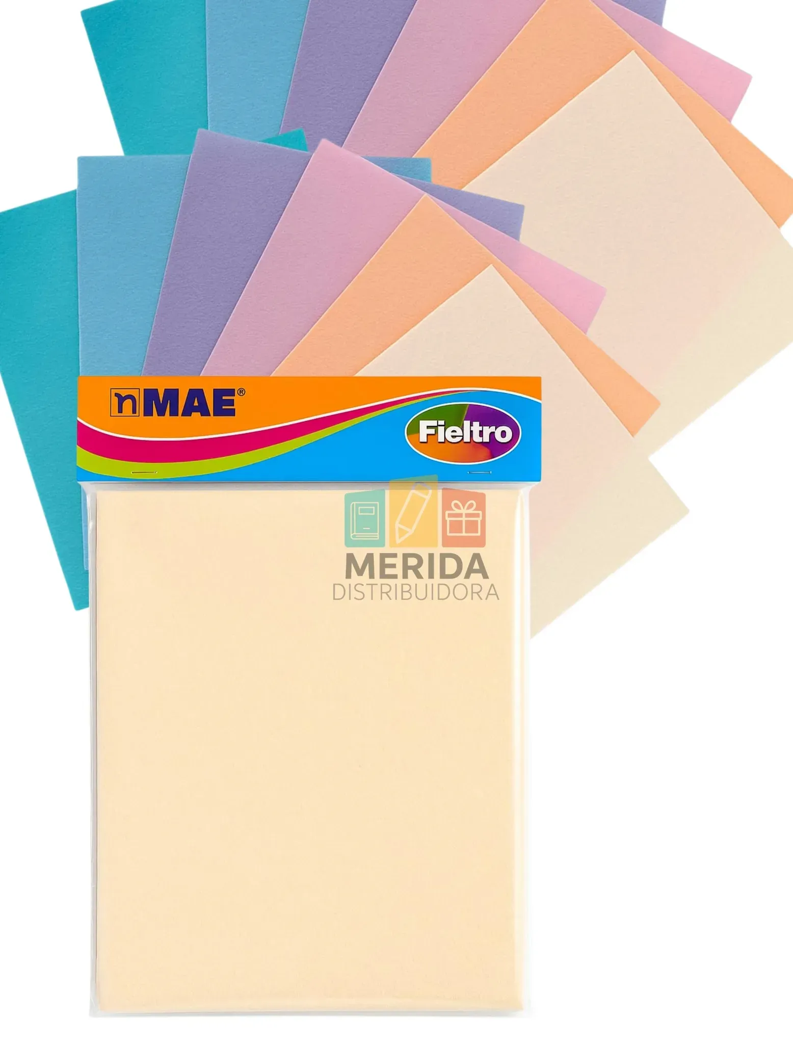 Dale color y creatividad a tus proyectos con el Fieltro Surtido MAE en tamaño carta. Este paquete incluye 12 hojas de fieltro en distintos colores vibrantes ideales para manualidades, trabajos escolares, decoración y más. Fabricado con materiales de alta calidad, es fácil de cortar, coser o pegar.