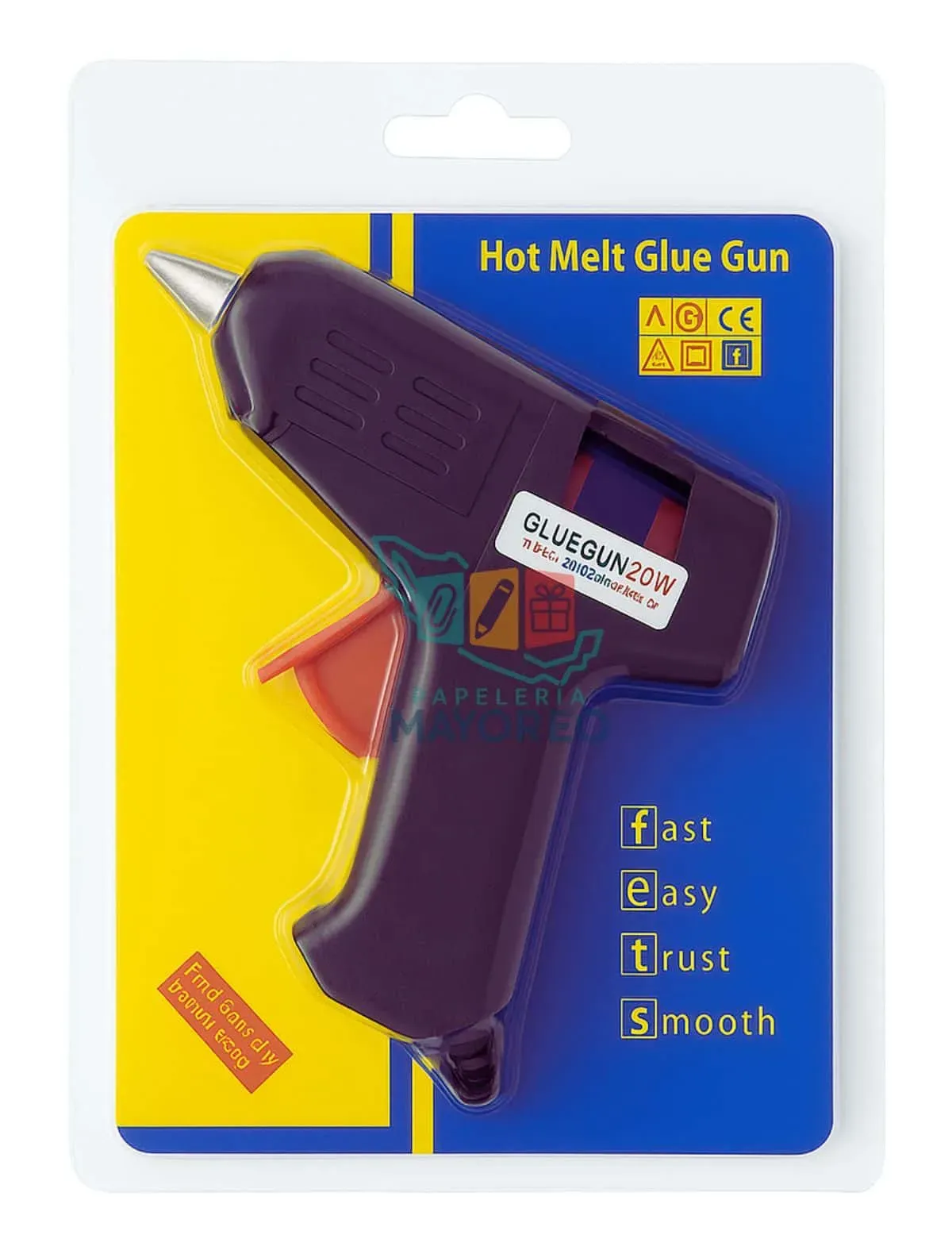 La pistola de silicón para manualidades, reparaciones rápidas, proyectos escolares, oficinas . Su diseño ergonómico con gatillo facilita el uso continuo y garantiza una aplicación precisa del adhesivo.