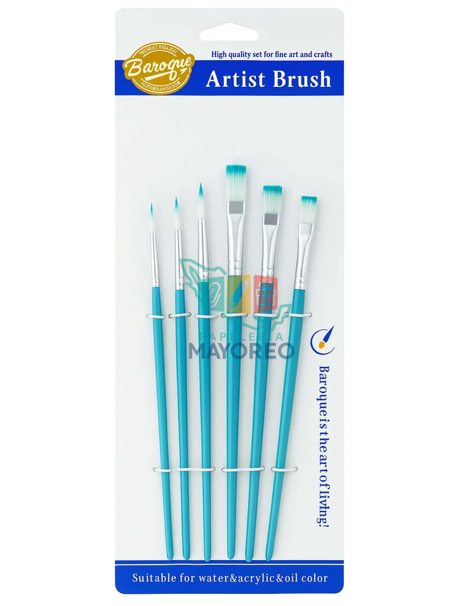 El set de pinceles artísticos (6 piezas) es ideal para estudiantes, artistas, diseñadores y amantes de la pintura. Incluye diferentes formas y tamaños de punta para trabajar con acuarela, acrílico y óleo.