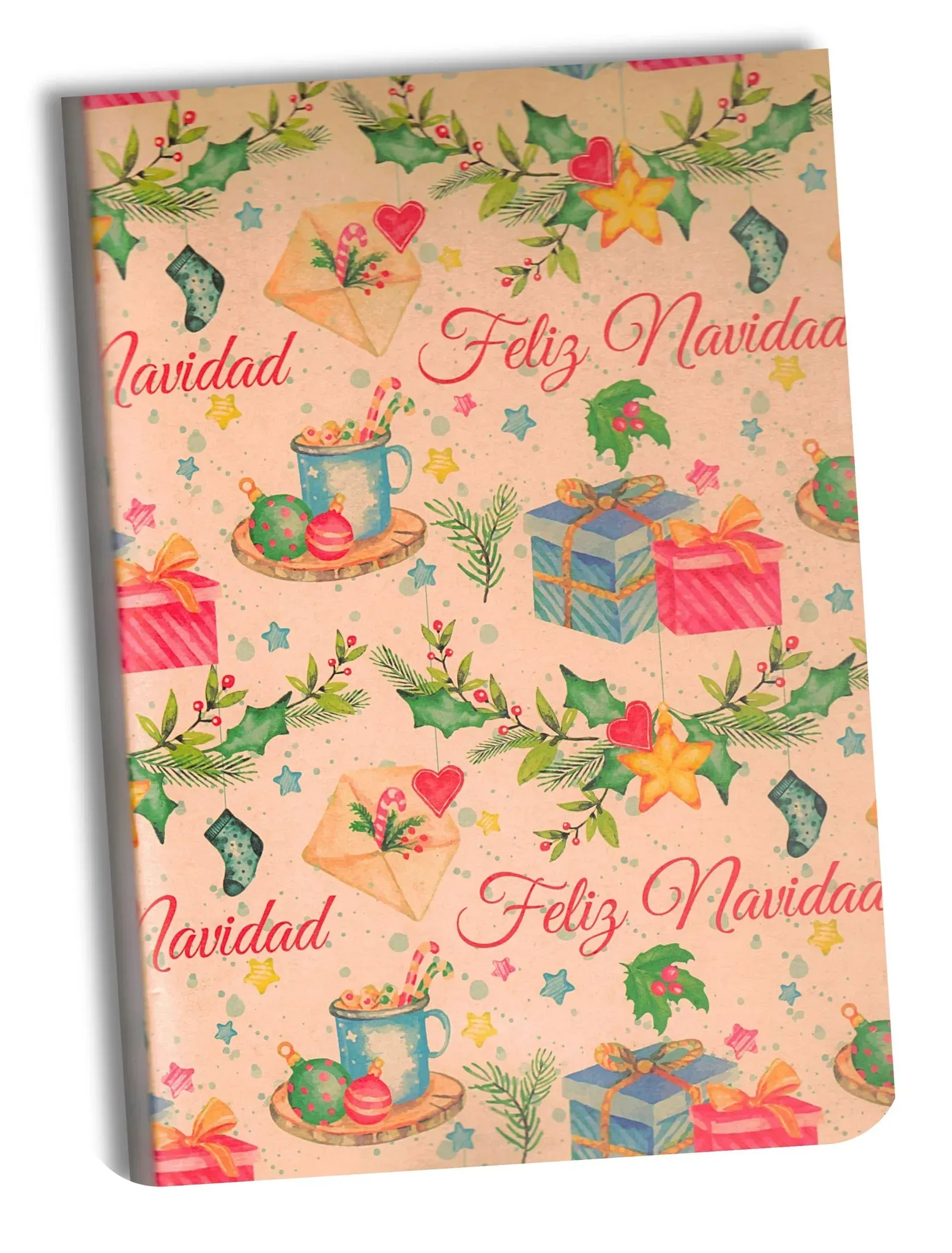 ✅ Diseño con ilustraciones de regalos, tazas, hojas de acebo y mensajes festivos “Feli...