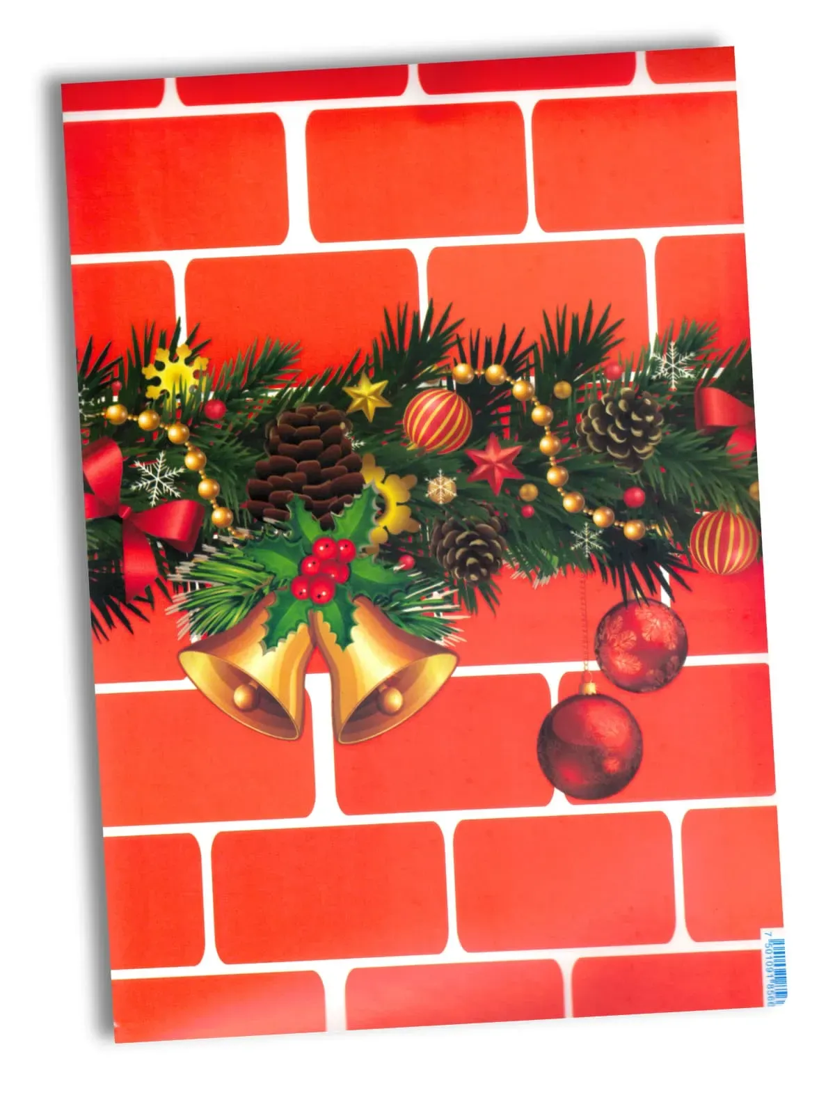 Envuelve tus obsequios con el espíritu clásico de la Navidad gracias a este papel de regalo con diseño de muro de ladrillo y guirnalda festiva.