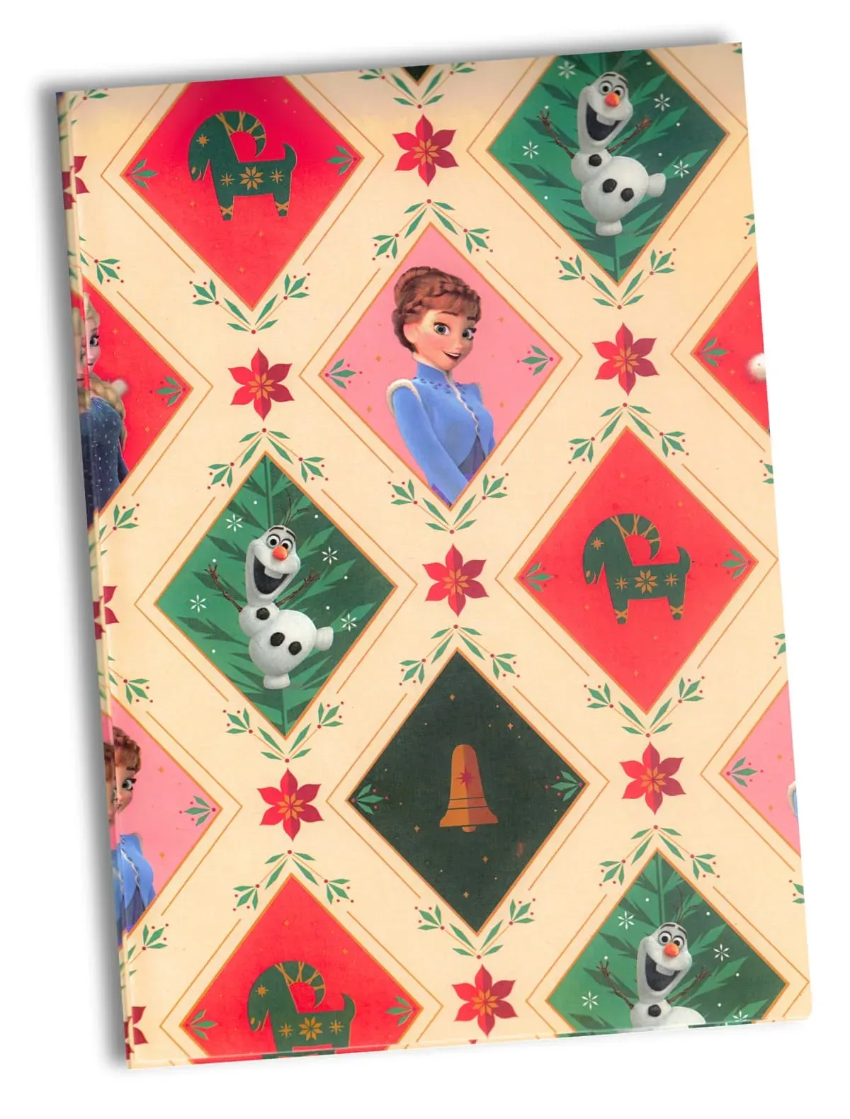 Envuélvelo todo con la magia de Disney. Papel de regalo navideño con personajes de Frozen, ideal para darle un toque especial a tus obsequios.