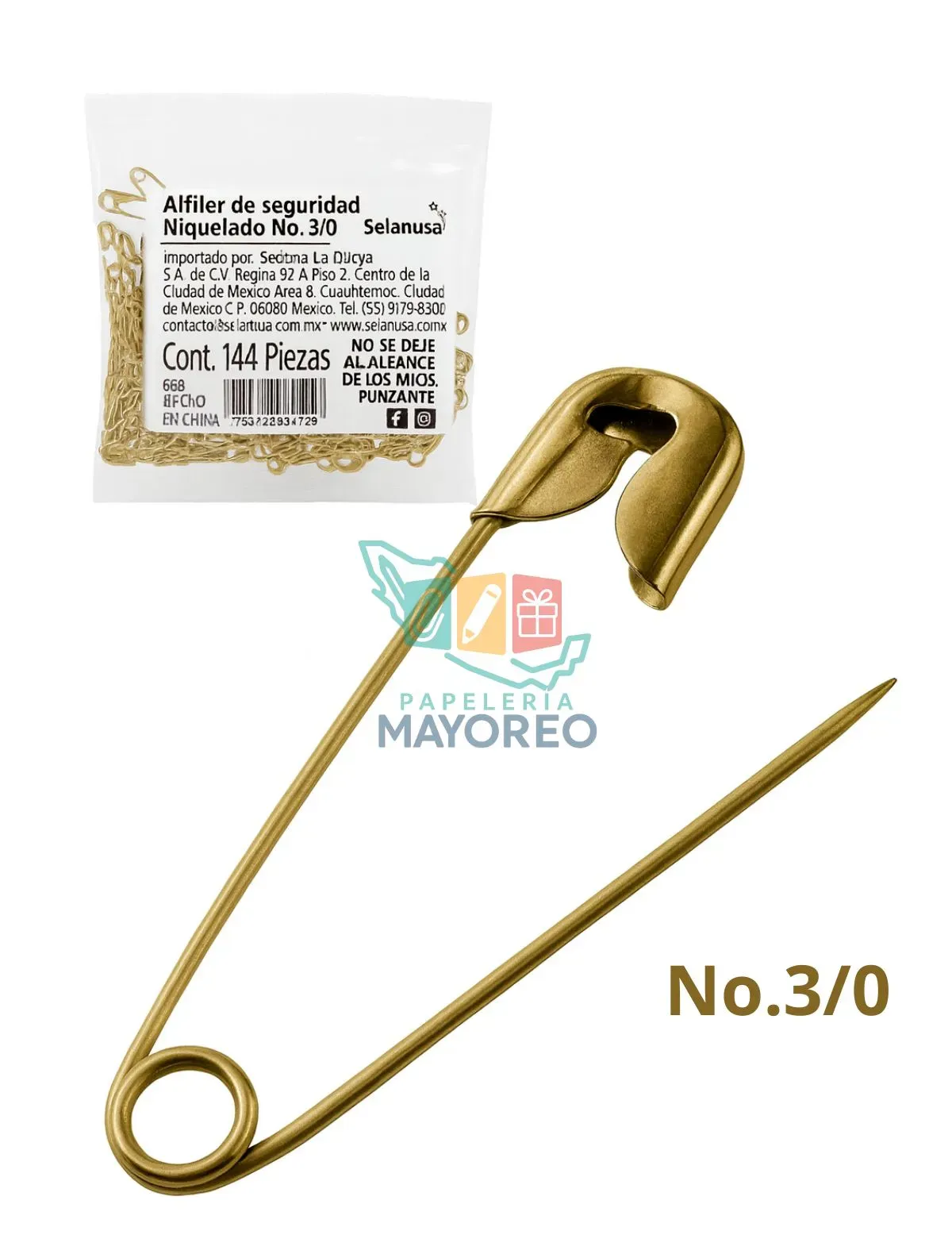 Alfiler de seguridad dorado c/144 #3/0 Selanusa 806469
