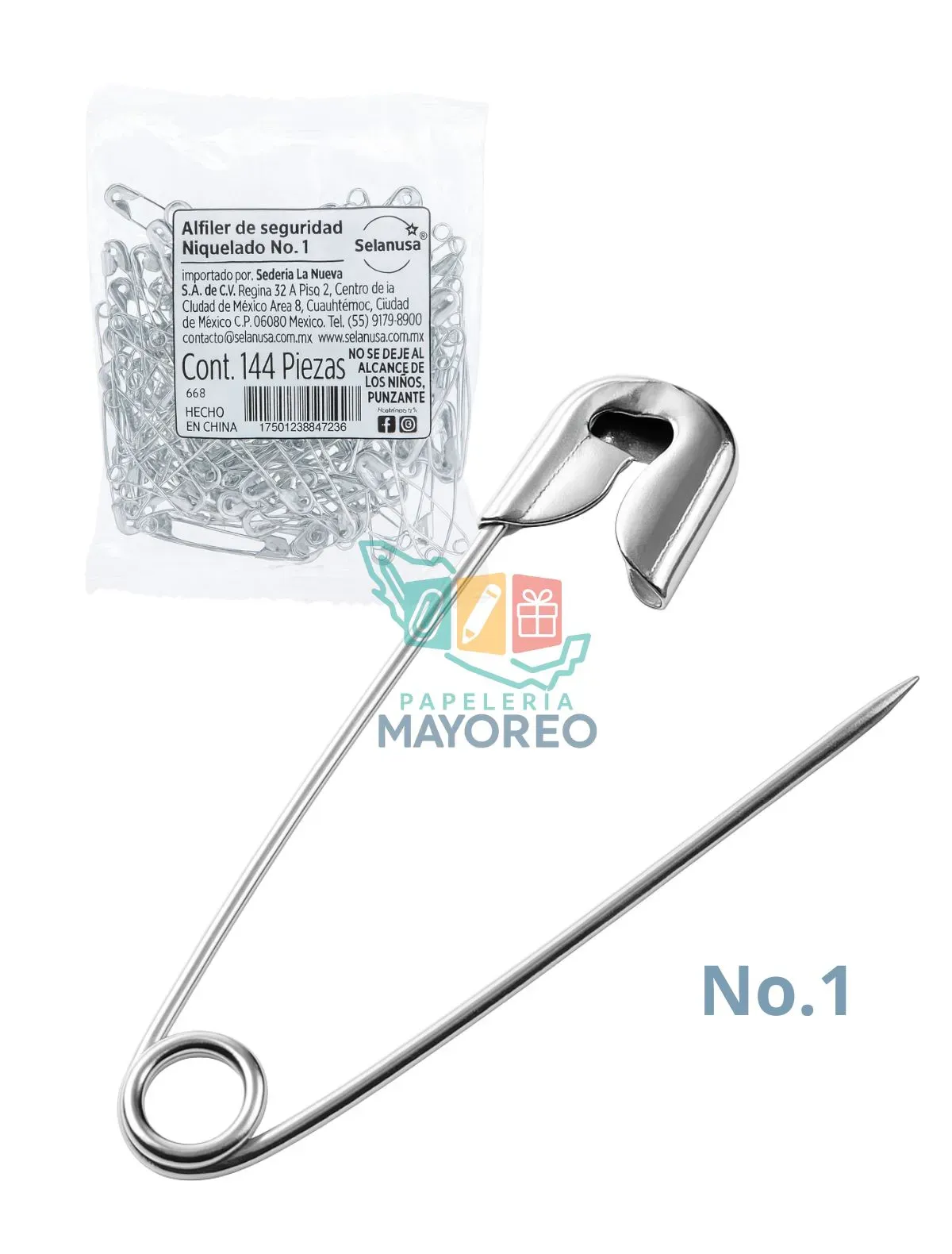 Alfiler de Seguridad Plata Selanusa – No.1 Caja con 144 Piezas