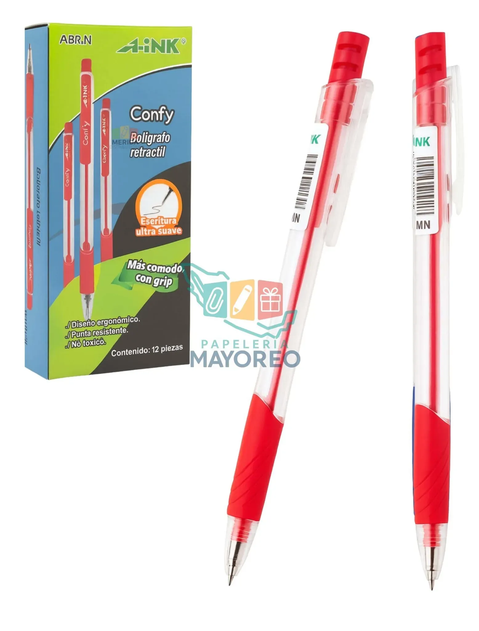 Bolígrafo Retráctil c/12 A-INK rojo 589750