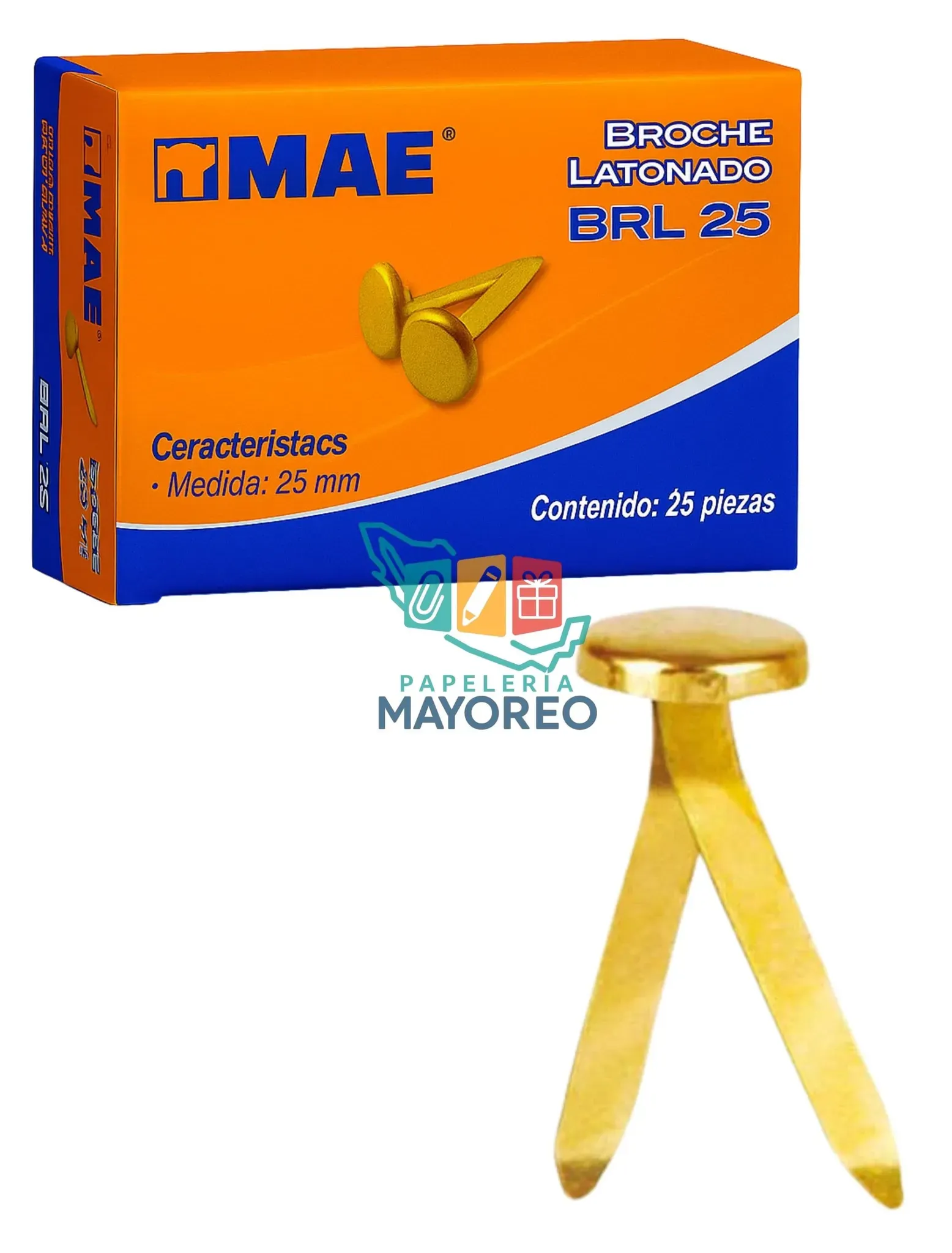 Broche latonado MAE BRL-25 , Fabricado en latón resistente con acabado brillante, ofrece sujeción firme y duradera.