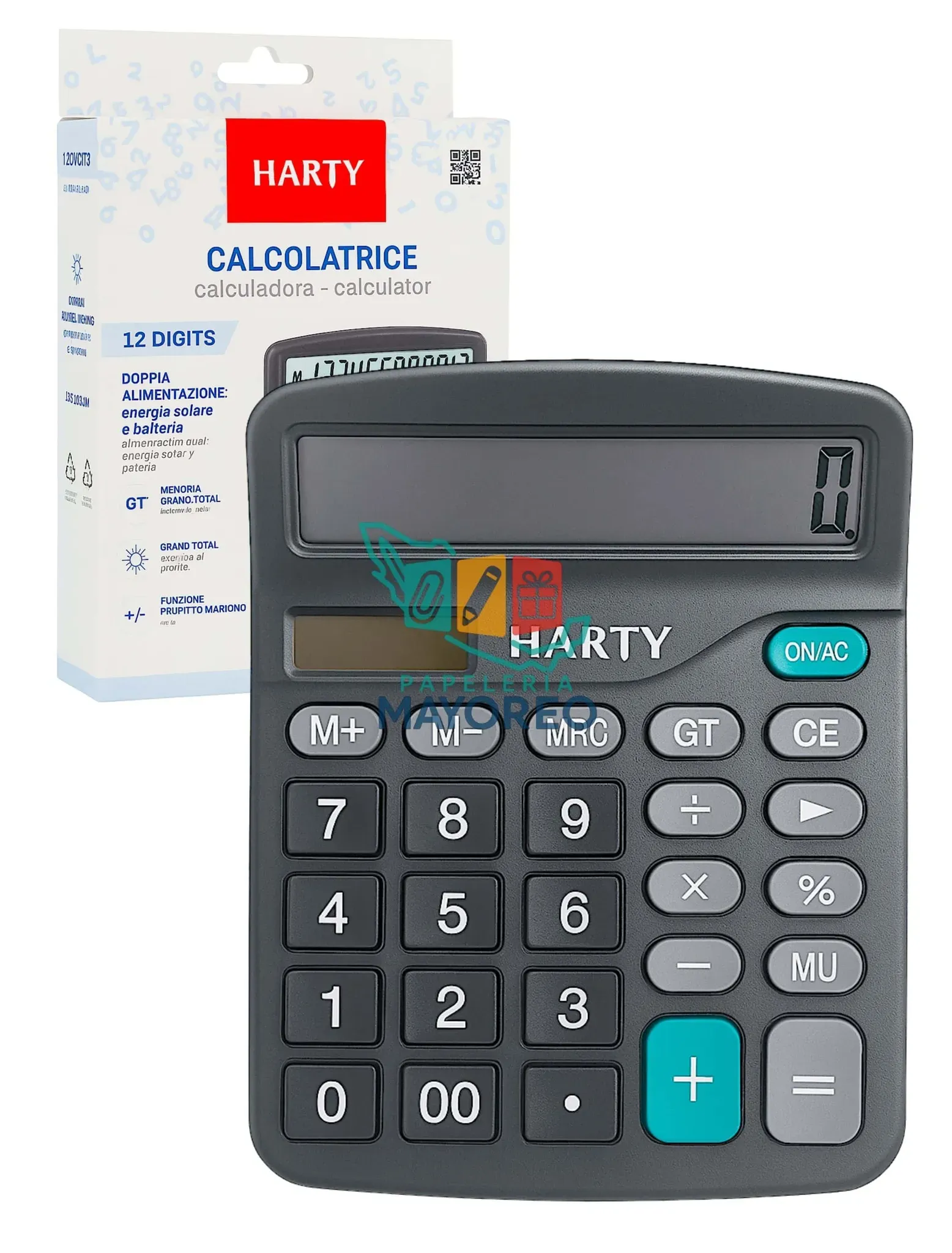 Dale estilo y funcionalidad a tu escritorio con esta elegante calculadora HARTY . Diseñada con pantalla de 12 dígitos, botones grandes y suaves al tacto, es ideal para uso escolar, de oficina o en el hogar.