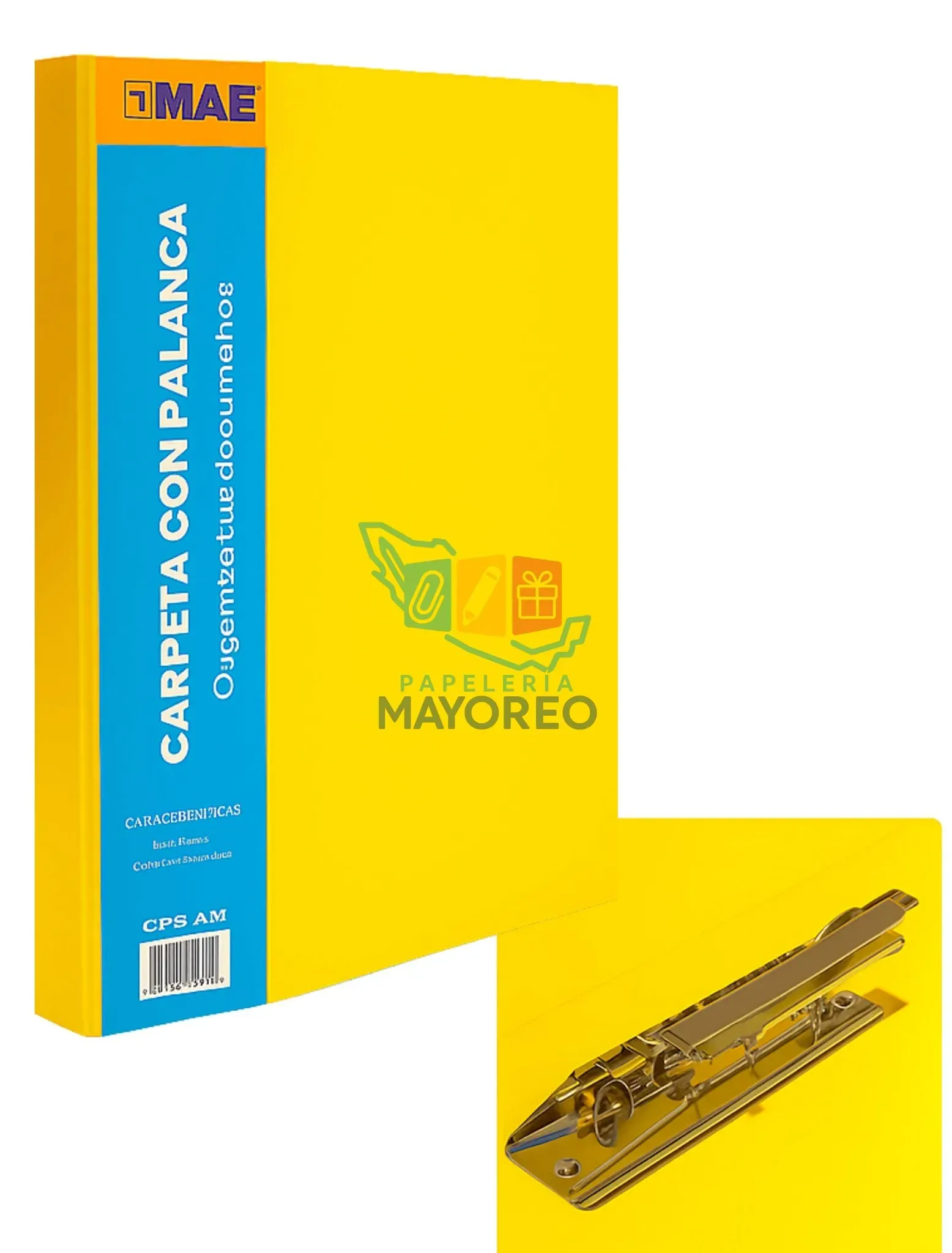 Carpeta con palanca MAE tamaño carta. Su mecanismo metálico de palanca.