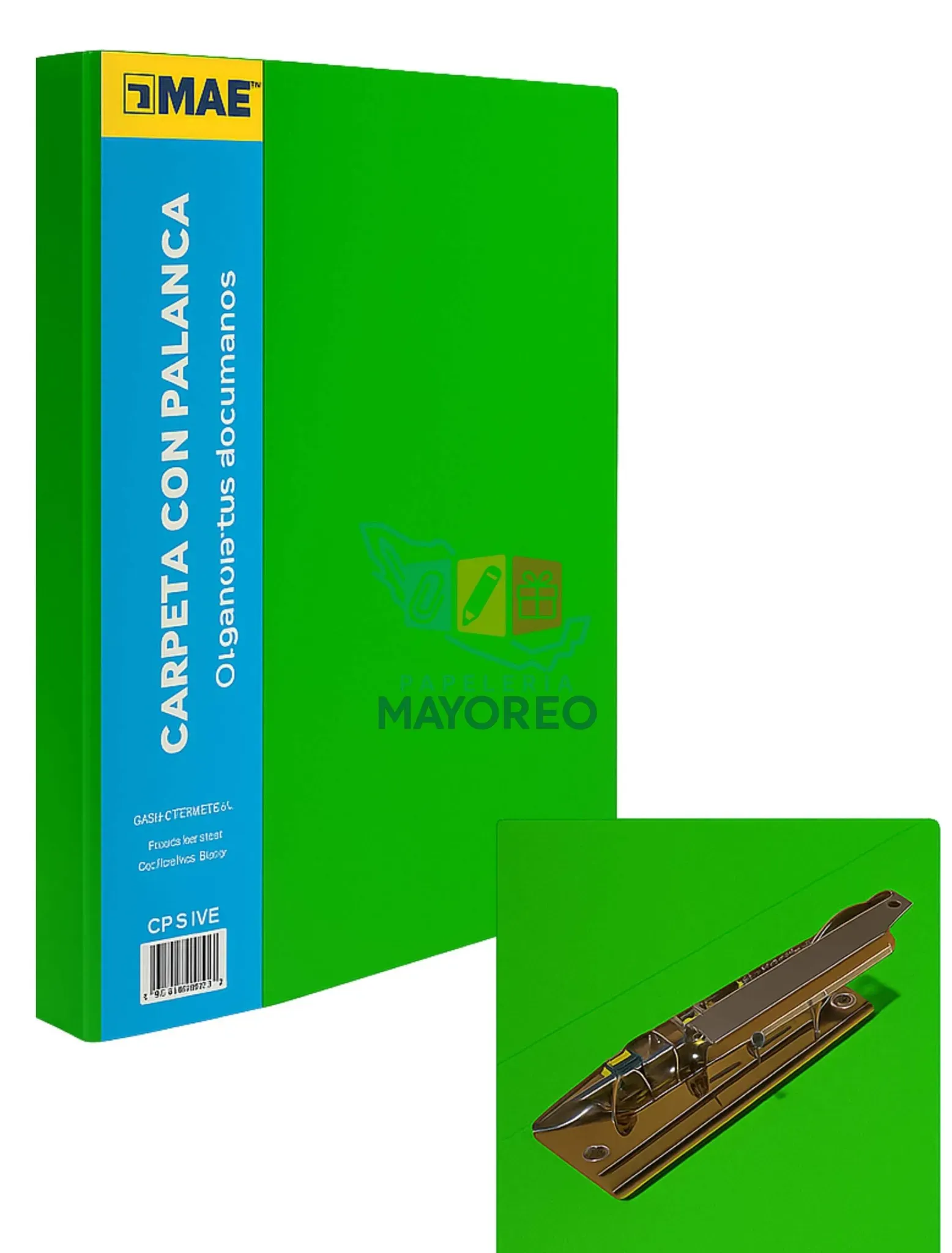 Carpeta con palanca MAE tamaño carta. Su mecanismo metálico de palanca.