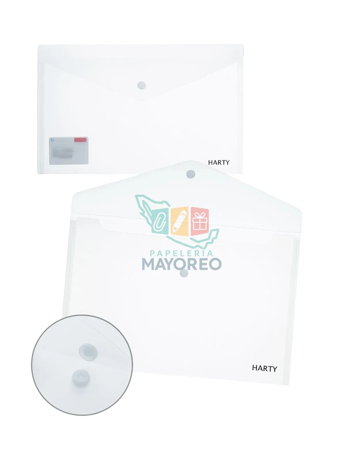 compra al mayoreo en México las carpetas plásticas Harty, diseñadas para oficina, escuela y organización de documentos. Fabricadas en material plástico flexible y resistente, con cierre a presión para mayor seguridad.