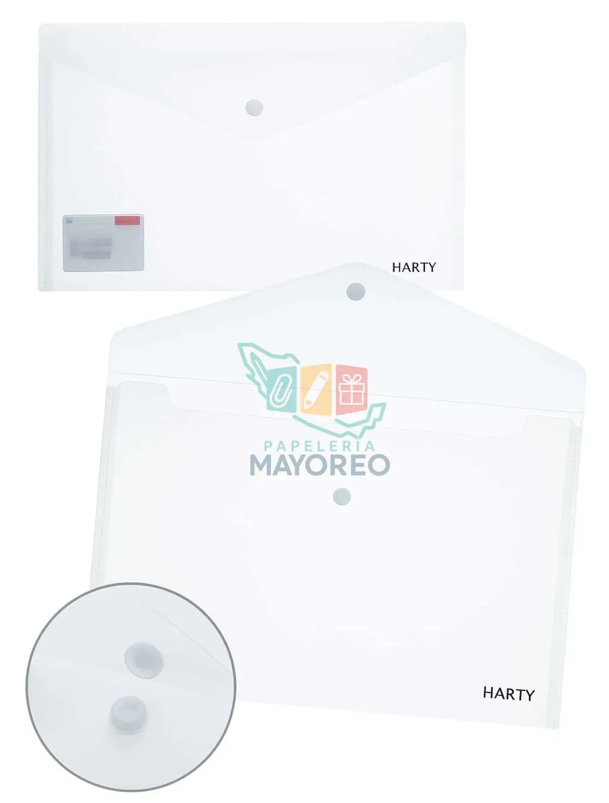compra al mayoreo en México las carpetas plásticas Harty, diseñadas para oficina, escuela y organización de documentos. Fabricadas en material plástico flexible y resistente, con cierre a presión para mayor seguridad.