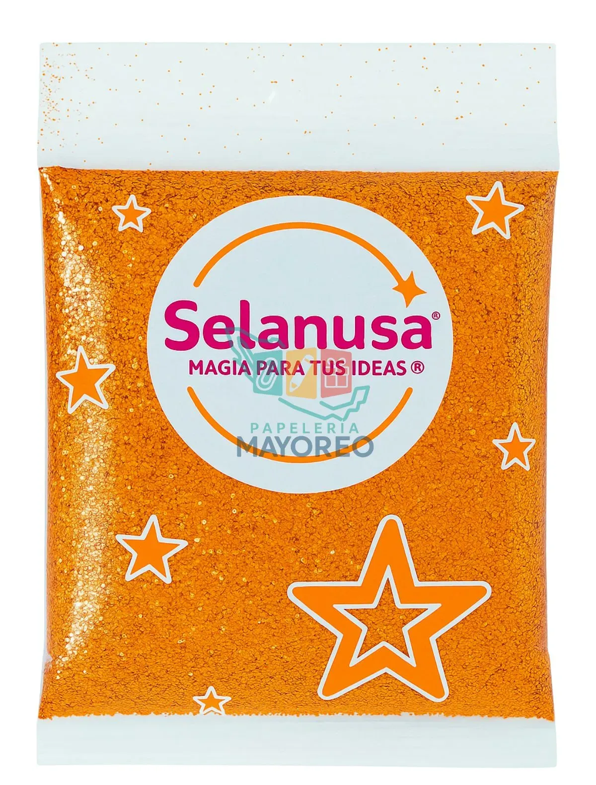 Bolsa con Brillo Fino para Manualidades y Decoraciones.Agrega un toque mágico a tus proyectos con la diamantina naranja  Selanusa, ideal para manualidades escolares, decoraciones, tarjetas, disfraces y más. Esta presentación en bolsa contiene diamantina de alta calidad, con un brillo intenso y unifo...