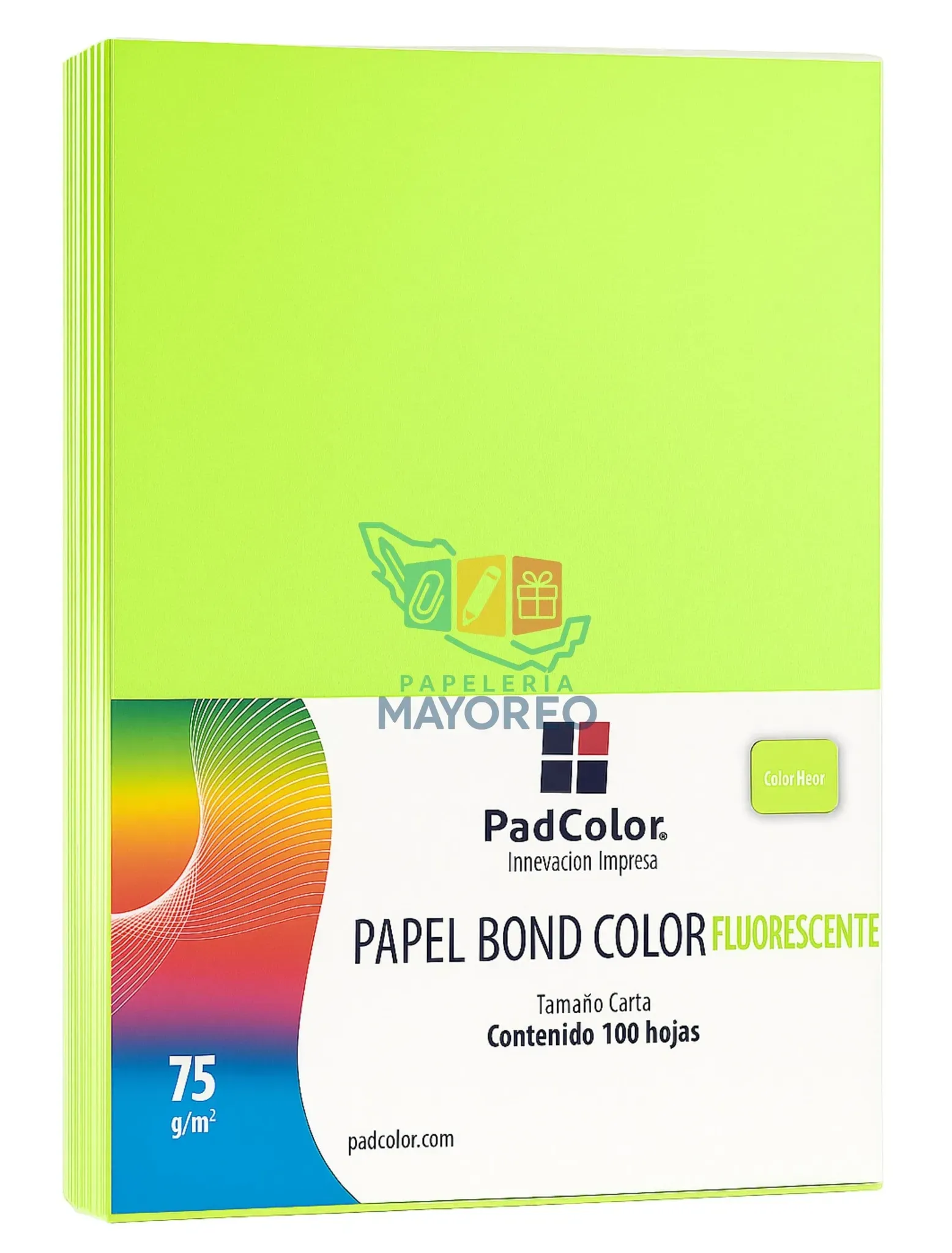 Hojas de Color Verde fluo Carta | Paq. c/100 029548