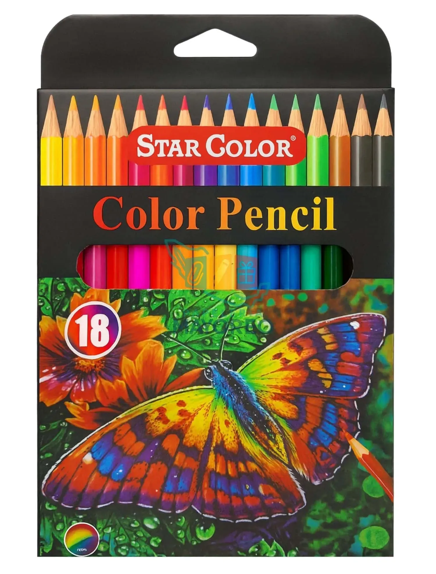 La caja de lápices de colores Star Color de 18 piezas Incluye una amplia gama de tonos intensos que permiten dibujar, colorear y realizar manualidades.