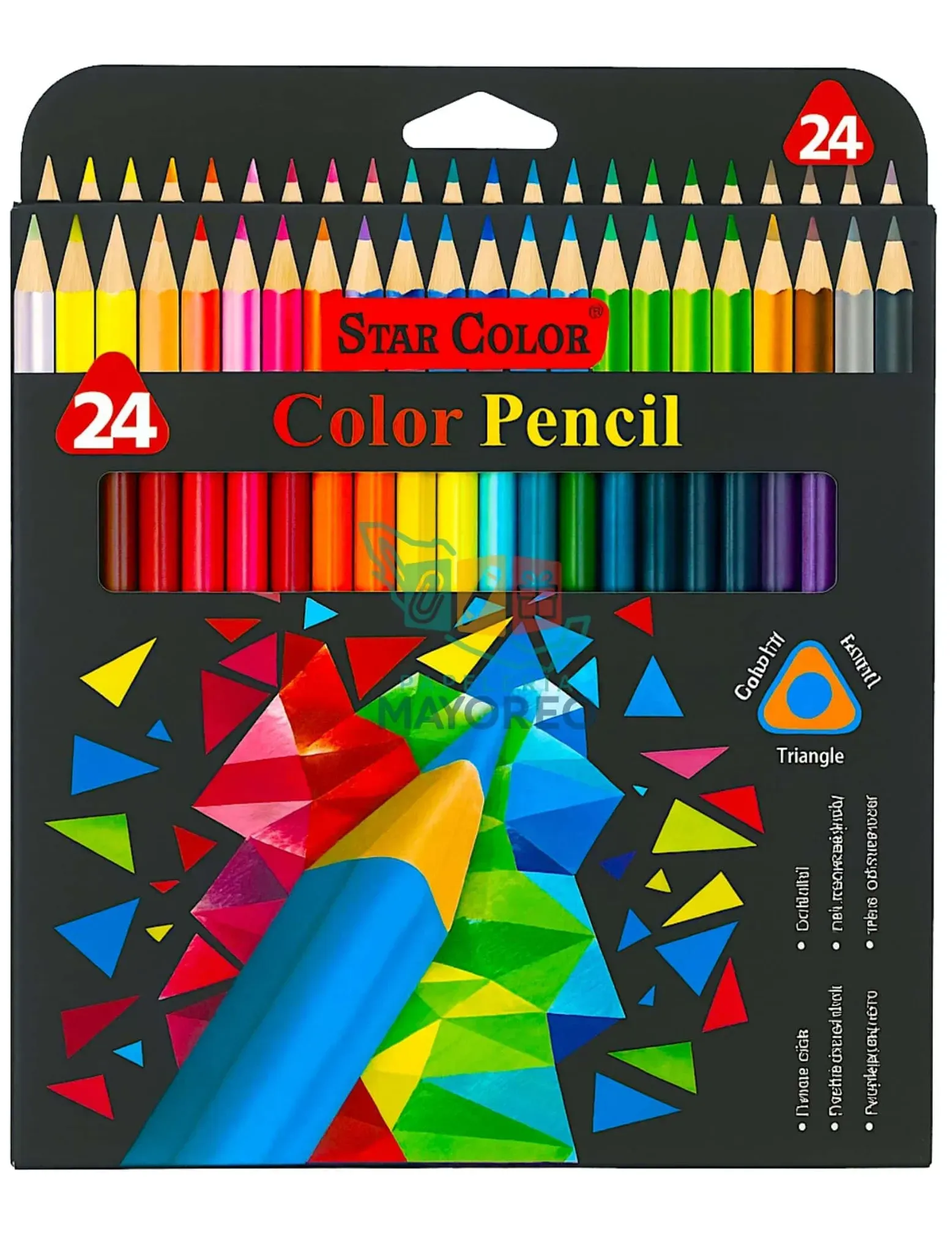 La caja de lápices de colores Star Color de 24 piezas Incluye una amplia gama de tonos intensos que permiten dibujar, colorear y realizar manualidades