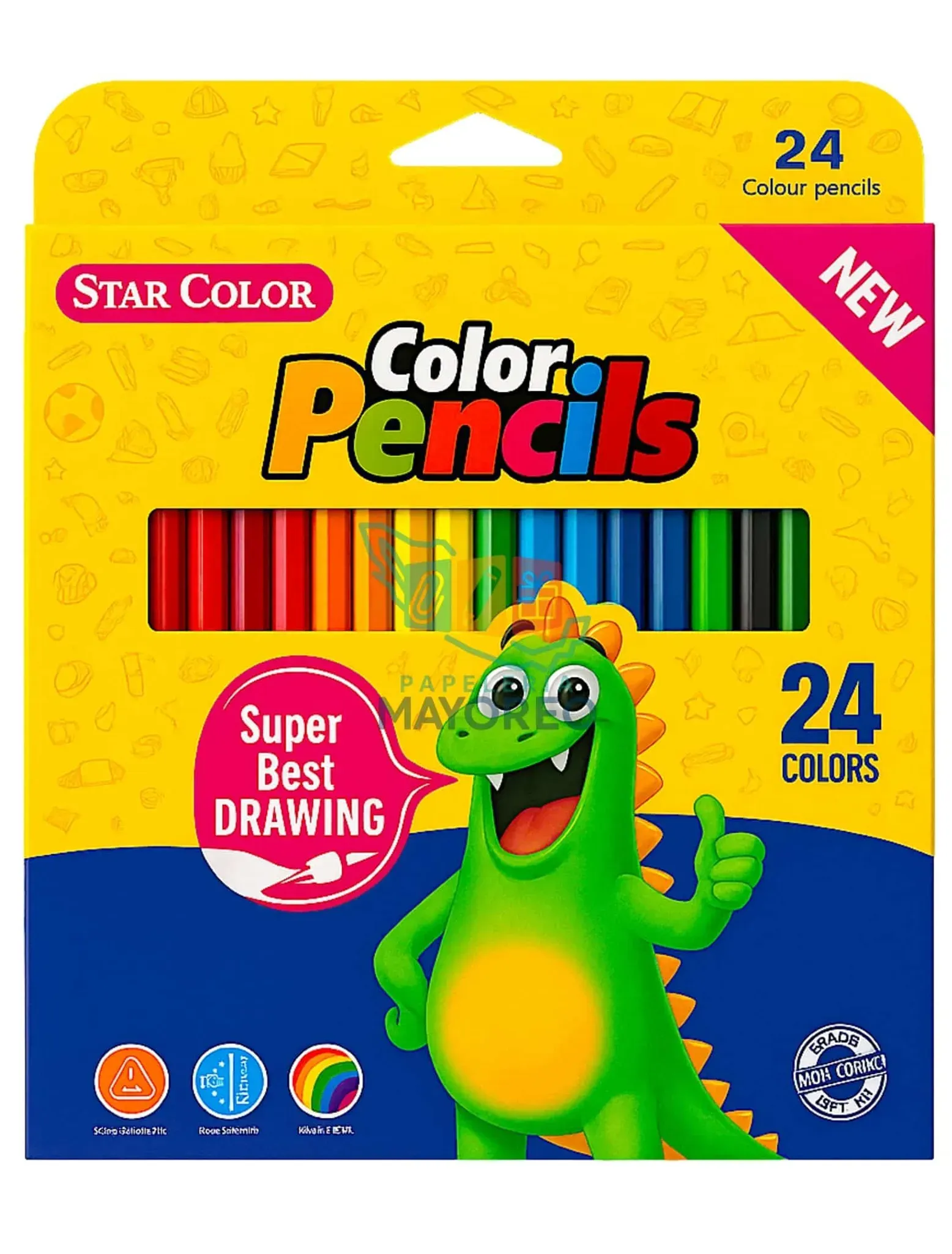 La caja de lápices de colores Star Color de 24 piezas Incluye una amplia gama de tonos intensos que permiten dibujar, colorear y realizar manualidades.