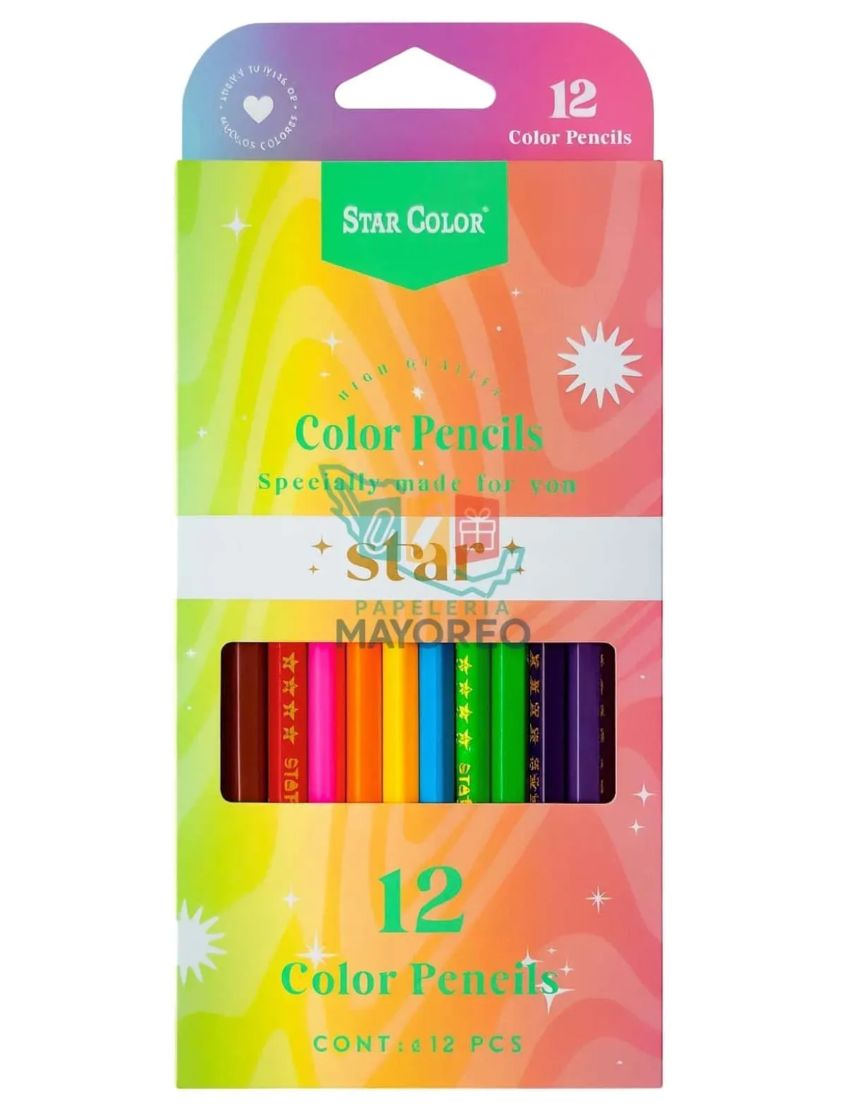 La caja de 12 lápices de colores Star Color Unipunta es ideal para escuela, oficina y actividades artísticas.