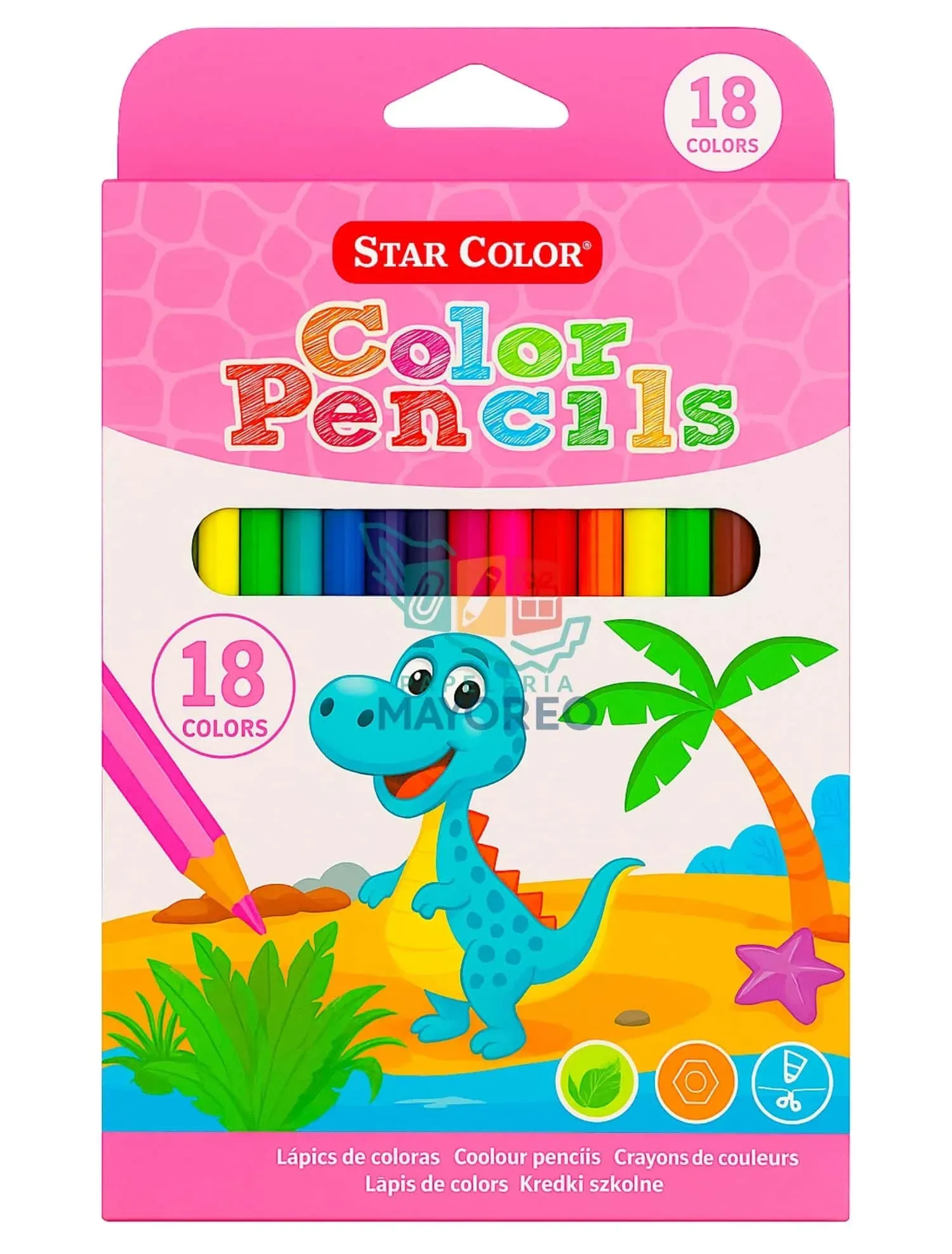 La caja de lápices de colores Star Color de 18 piezas Incluye una amplia gama de tonos intensos que permiten dibujar, colorear y realizar manualidades.