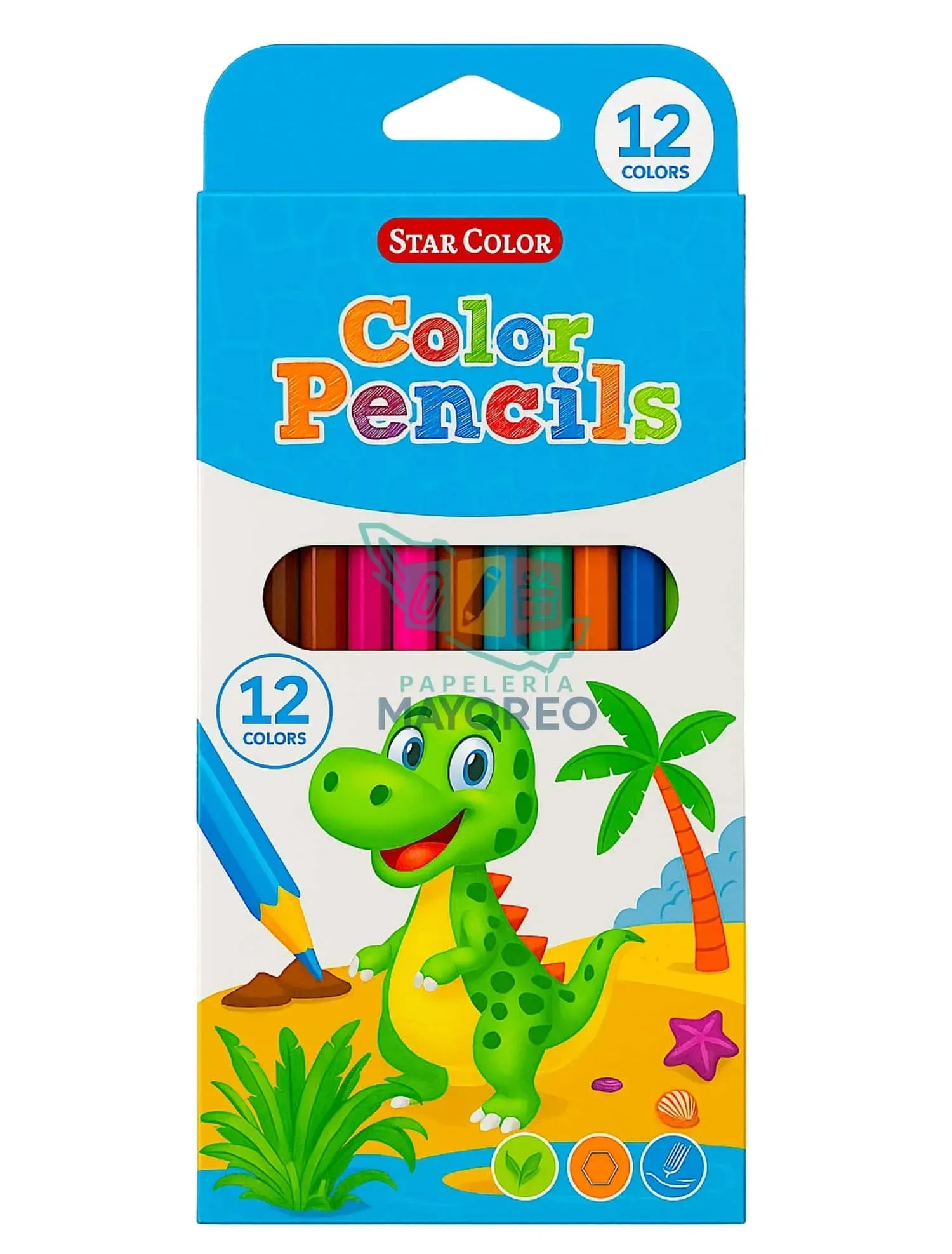 La caja de lápices de colores Star Color de 12 piezas Incluye una amplia gama de tonos intensos que permiten dibujar, colorear y realizar manualidades.