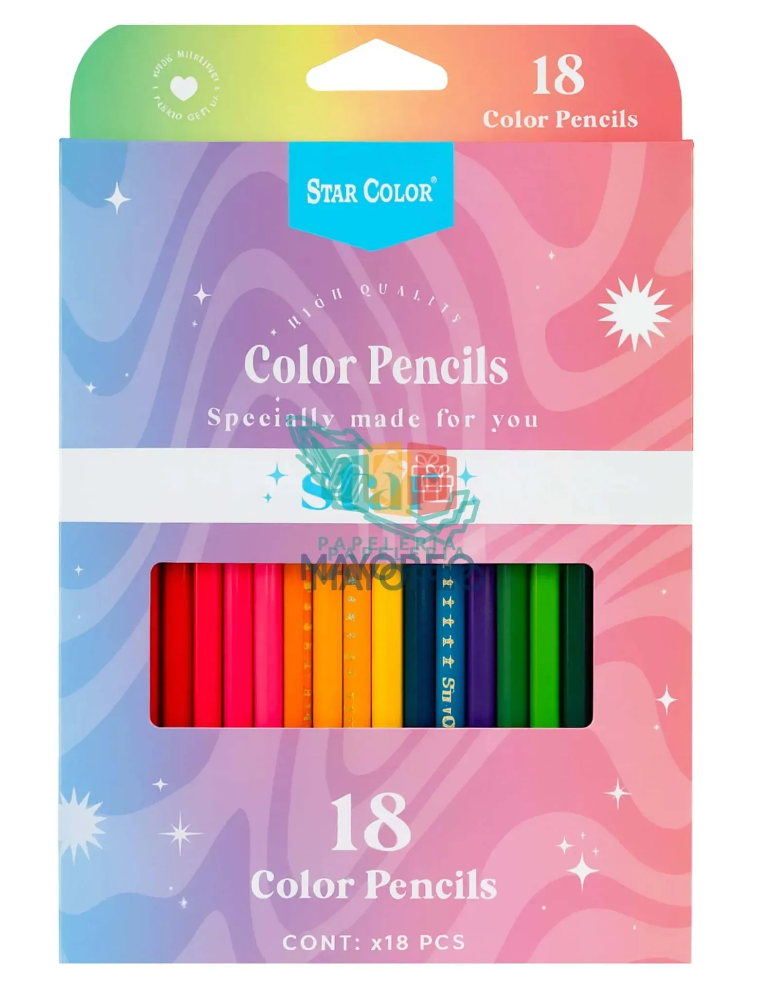 La caja de lápices de colores Star Color de 18 piezas Incluye una amplia gama de tonos intensos que permiten dibujar, colorear y realizar manualidades.