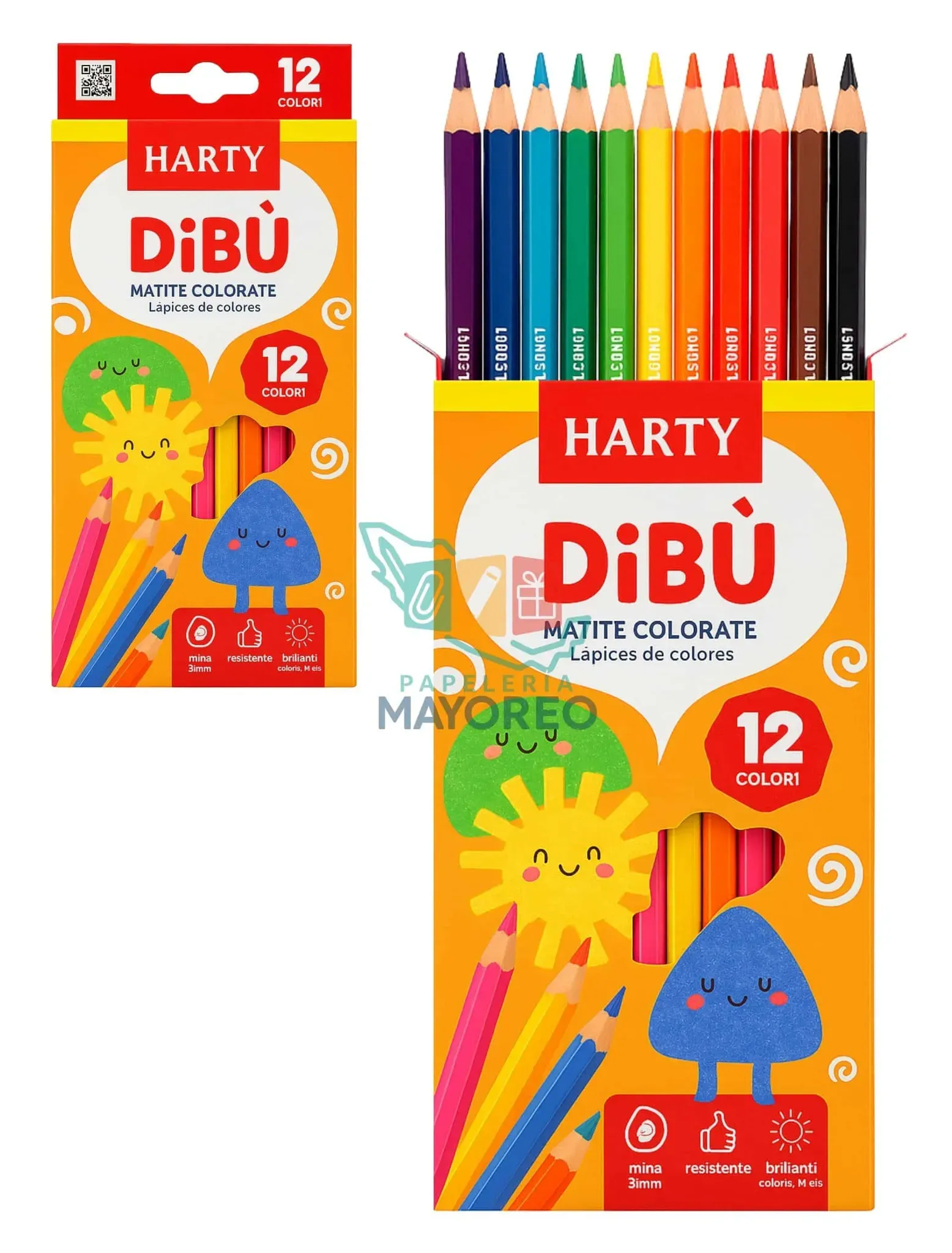 Lapices BUENA PIGMENTACION HARTY DiBÙ en presentación de 12 colores intensos. Ideales para niños, artistas y estudiantes,