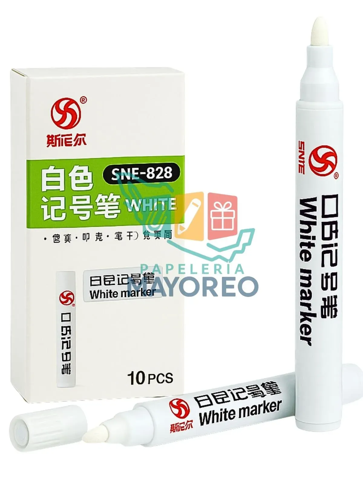 Marcadores con tinta blanca base agua, perfectos para escribir sobre cartulinas, plásticos y materiales oscuros.