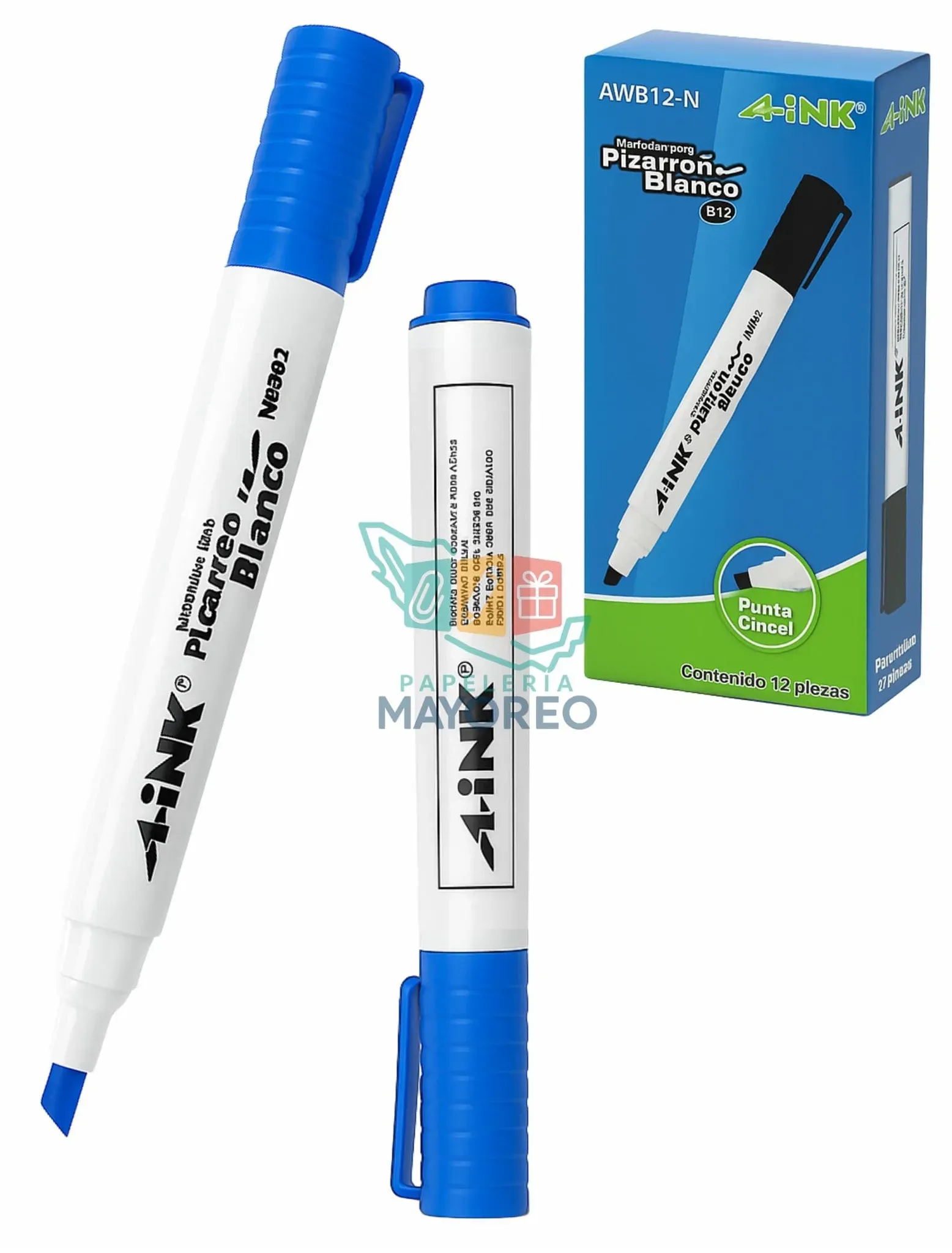 El marcador para pizarrón blanco A-INK modelo AWB12-N con tinta Azul es ideal para presentaciones, clases y oficinas. Su punta cincel permite trazos finos o gruesos con gran precisión y visibilidad. Gracias a su tinta de fácil borrado en seco, es perfecto para uso frecuente en pizarras blancas.