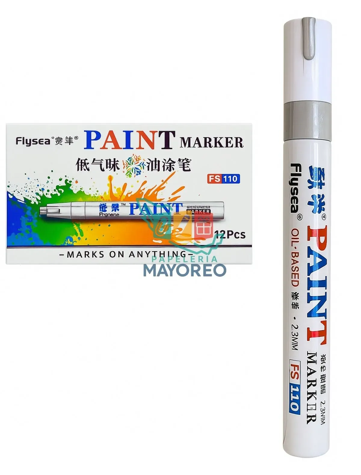 El marcador plata Paint Marker es ideal para escribir, decorar y resaltar sobre cualquier superficie. Gracias a su punta de 2-3 mm, este marcador permanente ofrece trazos firmes, uniformes y de gran visibilidad. Perfecto para uso escolar, oficina, artístico y profesional.