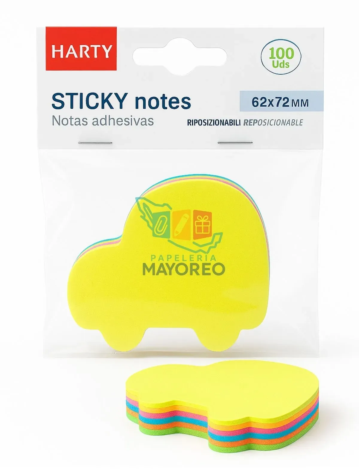 Notas Adhesivas HARTY 62x72 mm – 100 Piezas Multicolor | Sticky Notes Reposicionables