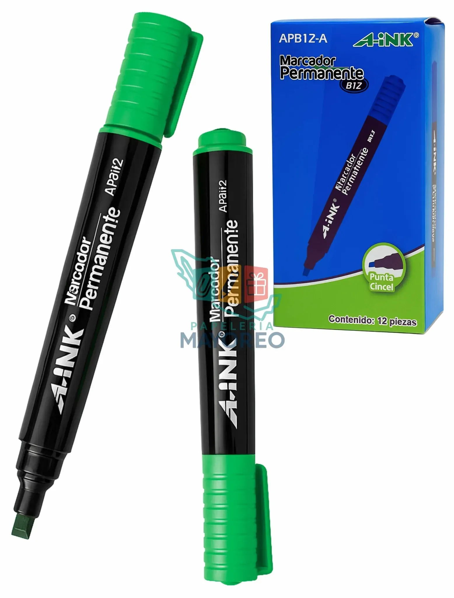 Marcador permanente A-INK B12 es ideal para escribir en cartón, papel, plástico. punta cincel permite trazos finos o gruesos, adaptándose a tus necesidades.