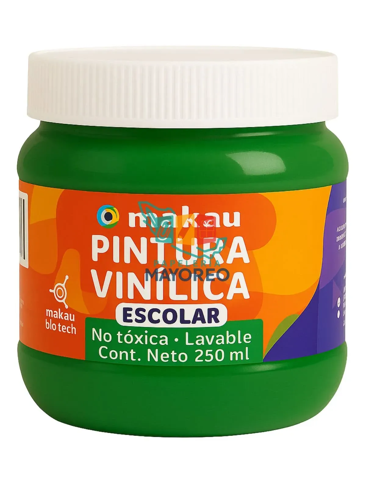 Pintura vinílica escolar color verde, ideal para manualidades y trabajos escolares. Fórmula no tóxica y lavable, segura para uso infantil.