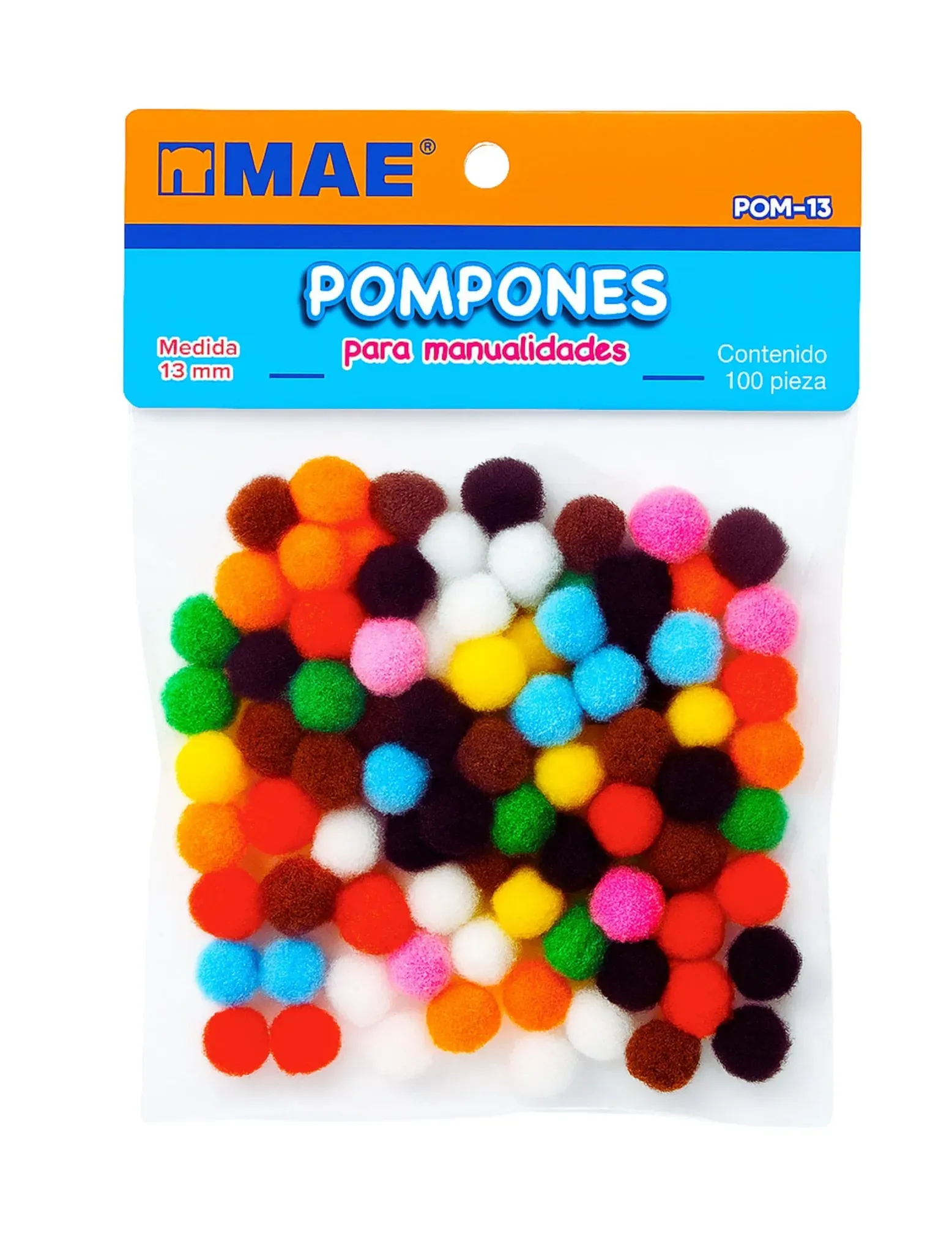 Los pompones MAE de 13 mm son ideales para trabajos escolares, proyectos creativos y manualidades. Su presentación en bolsa con 100 piezas de colores surtidos los hace perfectos para decorar, pegar y crear figuras divertidas. Fabricados con materiales suaves, seguros y de alta calidad.