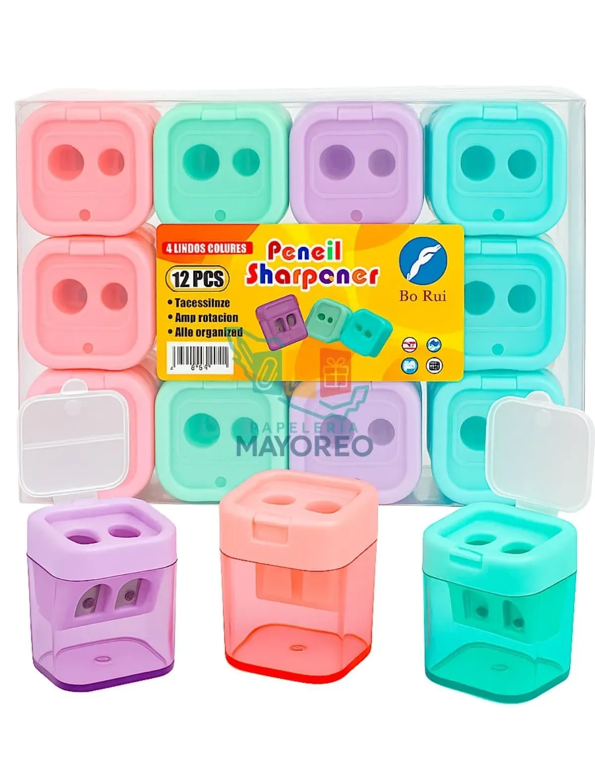 📦 Contenido: 12 sacapuntas dobles con depósito