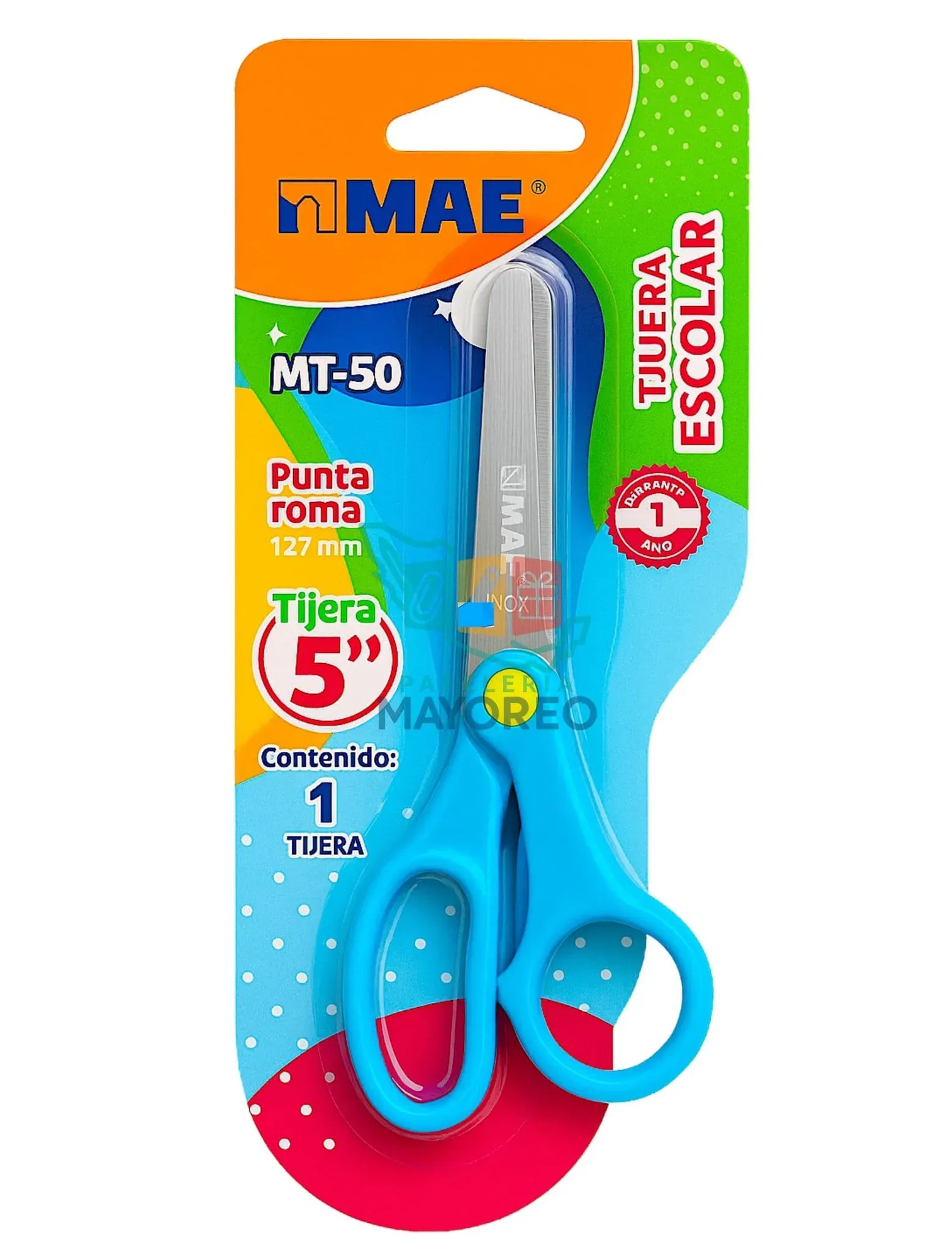 Tijera escolar MAE MT-50 es perfecta para niños y actividades escolares. Con diseño ergonómico, punta roma para mayor seguridad